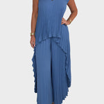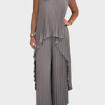 Atnaujinkite savo garderobą su šiuo pilku faltuotu kombinezonu, kuris derina srautą, komfortą ir subtilų rafinuotumą. Puikiai tinka oficialiems pasirodymams, taip pat kasdienei prabangai.