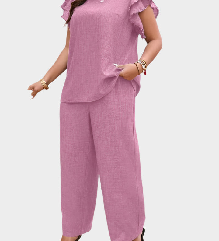 Lininė palaidinė su mygtuku ir V formos iškirpte