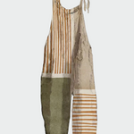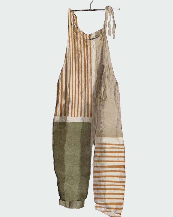 Linijinė Harmonija yra jumpsuit su minimalizmo ir meninės estetikos akcentais. Vertikalios ir horizontalios linijos smėlio, alyvuogių ir rudos spalvų atspalviuose sukuria subalansuotą ir modernų derinį, kuris skleidžia eleganciją.