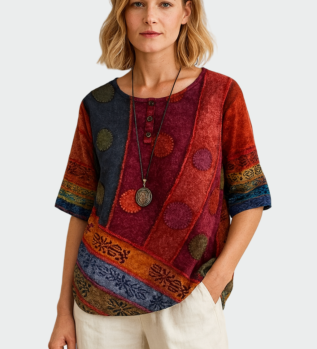 Medvilninė bliuskutė su siuvinėtomis gėlėmis