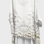 Tunikas Švelnus Pusiaušalė skleidžia harmoniją ir natūralų eleganciją, su dizainu, kuris primena švelnumą ir šakų judėjimą vėjyje. Lengva forma švelniai apglėbia kūną, o žemės atspalviai sustiprina ramybės ir natūralios rafinuotumo jausmą.