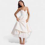 Atraskite romantišką suknelę, kuri sujungia lengvą eleganciją su praktiškais akcentais. Ideali ypatingoms akimirkoms, kai norite jaustis patogiai ir įspūdingai!