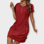 Atnaujinkite savo kasdienybę su šia bordo suknele su trumpomis rankovėmis. Jos paprastas ir patogus dizainas suteikia stiliaus be perdėjimo, puikiai tinka bet kokiai progai.