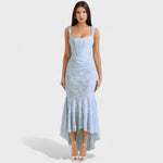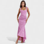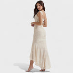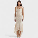 Romantiškos Silueto Suknelė įkūnija laikmečio eleganciją su savo subtilia nėriniuota medžiaga ir silueto formavimu, kuris pabrėžia figūrą. Puikiai tinka vestuvėms, sodų šventėms ar bet kuriam momentui, kuris reikalauja švelnios rafinuotumo.