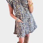 Išryškinkite savo asmeninį stilių su šia įspūdinga mini suknele leopardų raštu. Jos patogi linija ir žaisminga nuotaika daro ją idealia kasdienėms stilingoms išvaizdoms.