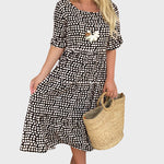 Pabrėžkite savo vasaros stilių su šia oro suknele, kuri derina natūralius atspalvius su subtiliu raštu. Klasikinis drabužis, siūlantis komfortą ir eleganciją kiekviename žingsnyje.