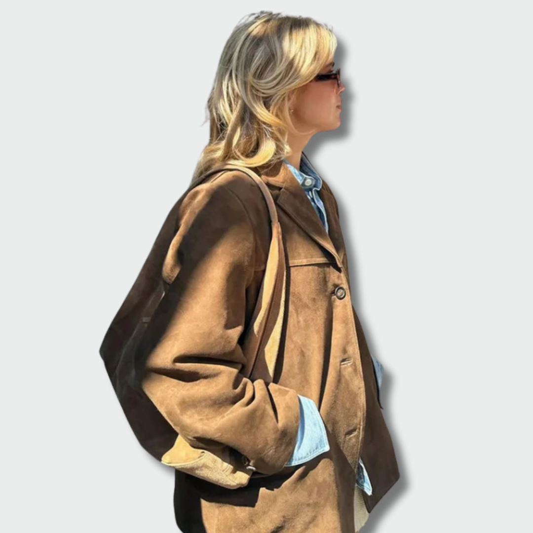 Šis elegantiškas rudos spalvos oversized stiliaus trenchas puikiai tinka rudens ir žiemos sezonui. Minkšta zomšos imitacija suteikia jaukumo, o platūs atlapai prideda išskirtinės elegancijos. Tai drabužis, kuris leis atrodyti stilingai net šalčiausią dieną.