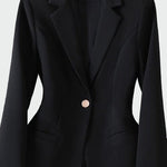 Laiko patikrintas švarkas su elegantiška forma, pabrėžiantis moteriškumą ir stilių. Vienas mygtukas priekyje suteikia subtilumo, o kišenės su švariomis linijomis sustiprina minimalistinį charakterį. Puikiai tinka tiek profesionalioms išvaizdoms, tiek elegantiškoms vakarinėms išvykoms.