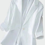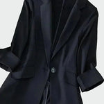 Stilingas švarkas su klasikinėmis linijomis ir moderniu dizainu. Jame yra apykaklė su atvartais, priekinis užsegimas su viena saga ir ilgos rankovės su dekoratyvinėmis sagomis ant galo. Tiesi linija daro jį idealiu tiek profesinėms, tiek laisvalaikio progoms. Klasikinis drabužis, suteikiantis stiliaus ir elegancijos kiekvienam įvaizdžiui.