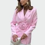 Romantiškas ir elegantiškas švarkas, kuris išsiskiria dėl rožių diržo, suteikiančio moteriškumo ir laikino stiliaus. Tailored kirpimas pabrėžia siluetą, o švarko detalės daro jį idealiu ypatingoms progoms ir šikoms išvaizdoms. Puikiai derinamas su sijonu ar kelnėmis, kad sukurtumėte dėmesį traukiantį įvaizdį.