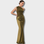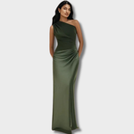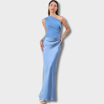 Ši satino vienos peties suknelė pasižymi aukščiausios kokybės medžiaga, švelniu blizgesiu ir puikiai krentančiu siluetu, kuris pabrėžia figūrą. Ideali ypatingoms progoms, vakarėliams ar romantiškiems pasivaikščiojimams, suteikianti jausmingą, rafinuotą ir stilingą įvaizdį.