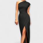 • Nesenstanti elegancija: asimetrinis suknelės dizainas ir įstrižinė apykaklė suteikia jūsų įvaizdžiui rafinuotumo.
