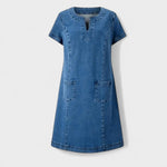 Atraskite be pastangų eleganciją ir neprilygstamą komfortą su Julia, elegantiška džinsine suknele. Ši suknelė sujungia paprastą, bet rafinuotą dizainą su maksimaliais dėvėjimo patogumais, todėl ji puikiai tinka kasdieniam naudojimui. Išsiskirkite stiliumi ir praturtinkite savo garderobą šiuo nepakeičiamu universaliu drabužiu.