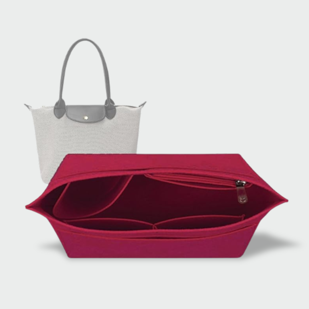 Šis aukštos kokybės Organizer Insert puikiai tinka Tote tipo rankinei: keli kišenėlių skyriai, tvirtas dizainas ir elegantiška apdaila. Laiko visus daiktus – nuo kosmetinės iki buteliuko – ir išlaiko rankinės formą be deformacijų.