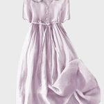 Ši švelni alyvinė suknelė skleidžia eleganciją ir romantiką, ideali kiekvienai moteriai, norinčiai išsiskirti su laikmečio klasika. Minimalistinis siluetas pabrėžia moteriškumą, o diržas juosmenyje subtiliai akcentuoja kūno formas.