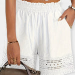 Lengvi ir moteriški, šie vasaros šortai sujungia romantišką nėrinių detalę su kišenių praktiškumu. Jų lengvas siluetas ir ypatinga tekstūra daro juos idealiais pasivaikščiojimams, atostogoms ir atsipalaidavimui vasaros akimirkomis.