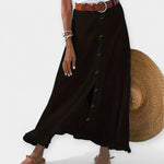 Lengvas ir elegantiškas, šis sijonas skleidžia subtilią moteriškumą ir suteikia lankstumo bet kokiai progai. Su šiek tiek permatomu audiniu ir mygtukais priekyje, jis dėvimas nuo ryto iki vakaro su tinkamu stiliumi.