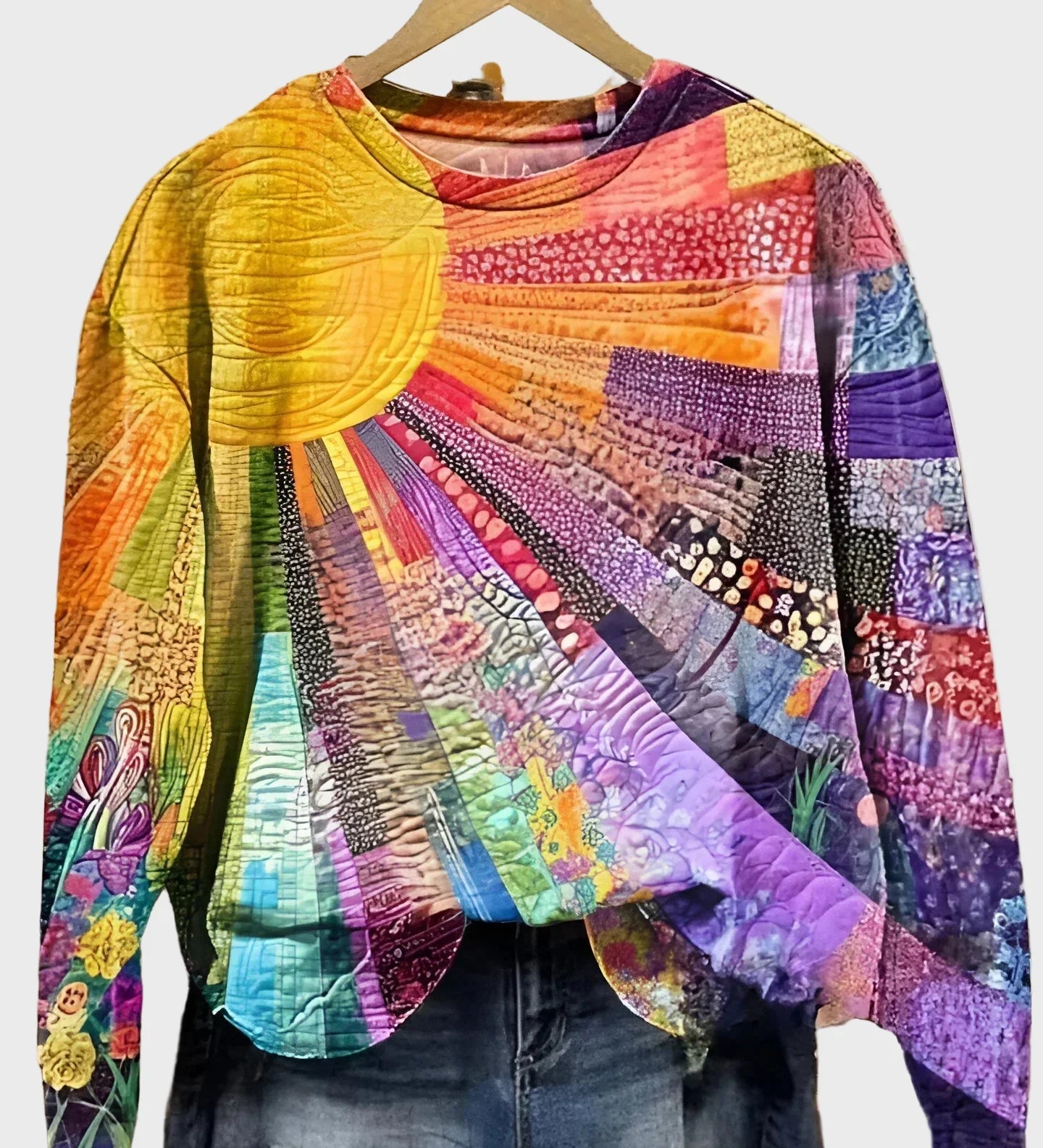 Pintinė palaidinė su saulės spindulių raštu