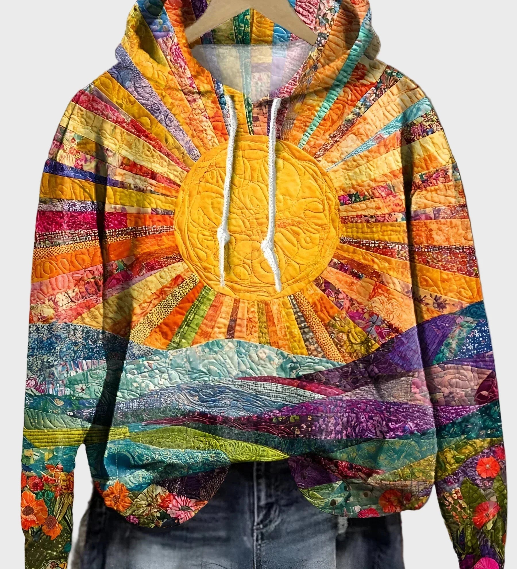 Pynėtas džemperis su meniniu piešiniu ir gobtuvu