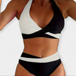 Šis seksualus dviejų dalių bikini nustebina savo minimalistiniu dizainu ir kryžminiu akcentu ant dekoltė. Jis subtiliai pabrėžia moteriškumą, idealiai tinka elegantiškoms išvaizdoms paplūdimyje ar jūsų vasaros pabėgimuose.