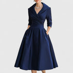 Pagaminta iš minkštos ir malonios liesti medžiagos, ši midi suknelė suteikia rafinuotą eleganciją ir išskirtinį patogumą. Jos subtilus V formos iškirptės dizainas ir lengvai platėjanti sijono linija puikiai pabrėžia figūrą, o 3/4 rankovės ir diskretiškos kišenės prideda praktinio žavesio. Idealus pasirinkimas tiek kasdienai, tiek ypatingoms progoms.