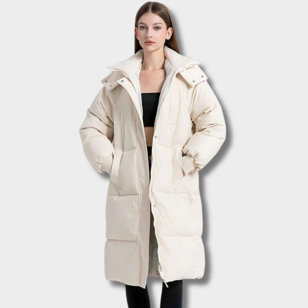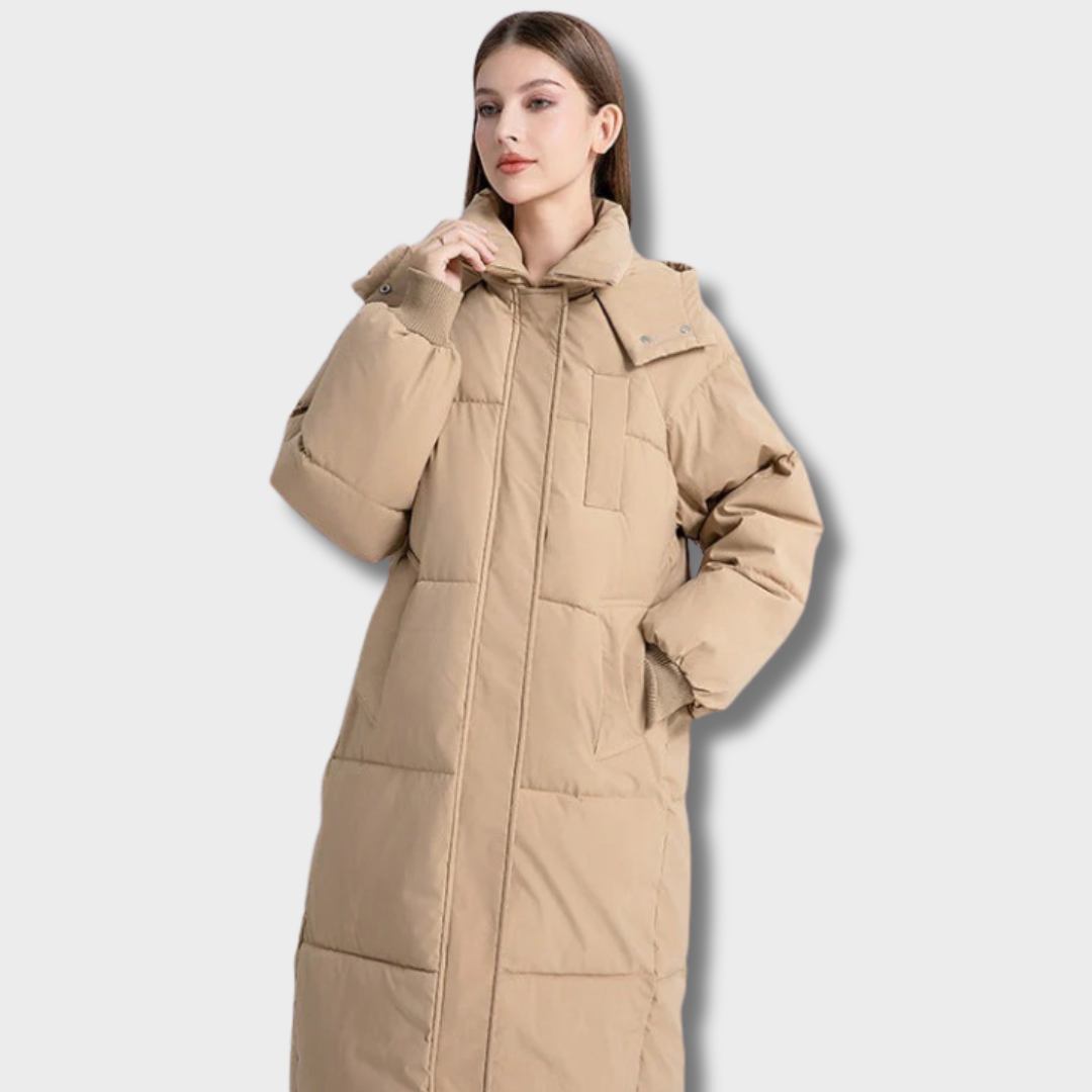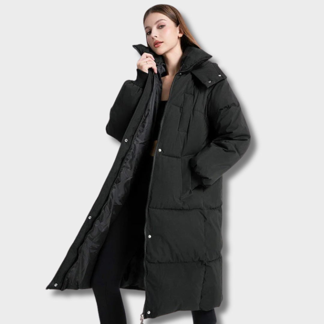 Gabrielė™ ilgas pūkinis paltas su gobtuvu – tai tobula investicija į šilumą ir eleganciją. Aukštos kokybės izoliacija saugo net šalčiausiomis dienomis, o ilgis suteikia prašmatnaus įvaizdžio ir apsaugos. Universalus dizainas derės tiek prie kasdienės aprangos, tiek prie išskirtinių progų – komfortas ir stilius susijungia viename.