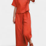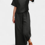 Idealiai tinka vasaros išvaizdai su neįpareigojančia elegancija. Lengvi trumpomis rankovėmis marškiniai puikiai derinami su laisvomis kelnėmis, užtikrinančiomis komfortą, stilių ir gaivumą visą dieną. Puikus pasirinkimas miesto stiliui, atostogoms ar atsipalaidavimui.