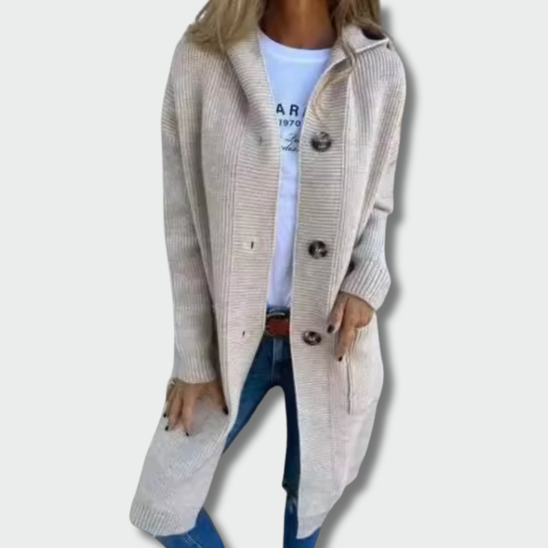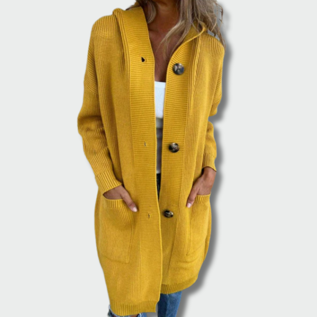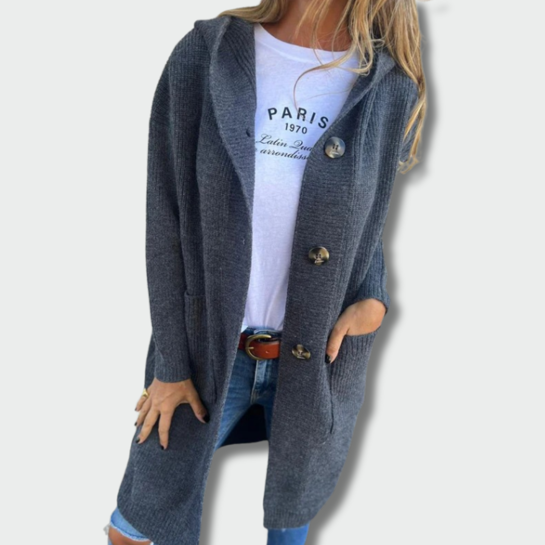 Šis ilgas kardiganas yra sukurtas moteriai, kuri vertina stilių ir patogumą. Minkštas, lengvas, bet kartu šiltas – jis taps nepakeičiamu rudens palydovu. Dera tiek prie kasdienės aprangos, tiek prie elegantiškesnio įvaizdžio.