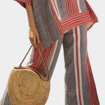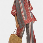 Viduržemio jūros stilius su atsipalaidavusia nuotaika. Daisy kombinezonas derina raudonus koralų dryžius su akmens pilkumo atspalviais plačioje ir laisvoje silueto formoje, primenančioje vasarą ir autentiškumą.
