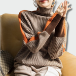 Minkštas, šiltas ir išraiškingas megztinis su kontrastingomis juostomis – puikus rudeniui ir žiemai. Golfo apykaklė suteikia elegancijos, o audinys – komforto ir ilgaamžiškumo. Tinka tiek miesto kelionei, tiek kasdienei elegancijai.